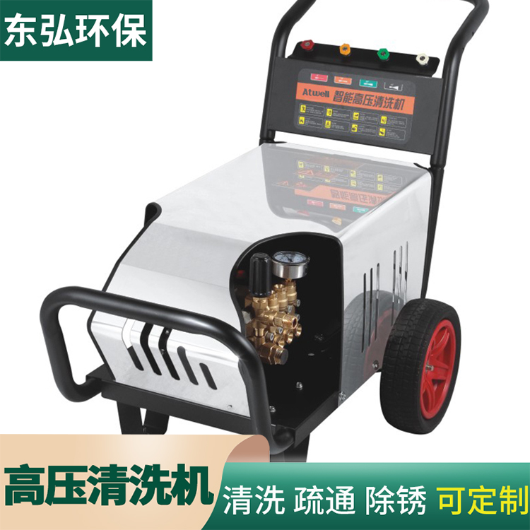 高壓清洗機(jī),是通過動(dòng)力裝置使高壓柱塞泵產(chǎn)生高壓水來沖洗物體表面的機(jī)器。它能將污垢剝離,沖走,達(dá)到清洗物體表面的目的。因?yàn)槭鞘褂酶邏核謇砦酃福愿邏呵逑匆彩鞘澜绻J(rèn)科學(xué)、經(jīng)濟(jì)、環(huán)保的清潔方式之一。 高壓洗衣機(jī)是一種高壓水射流清洗設(shè)備,它加水加壓至足夠的壓力,并使用高壓水清洗污垢